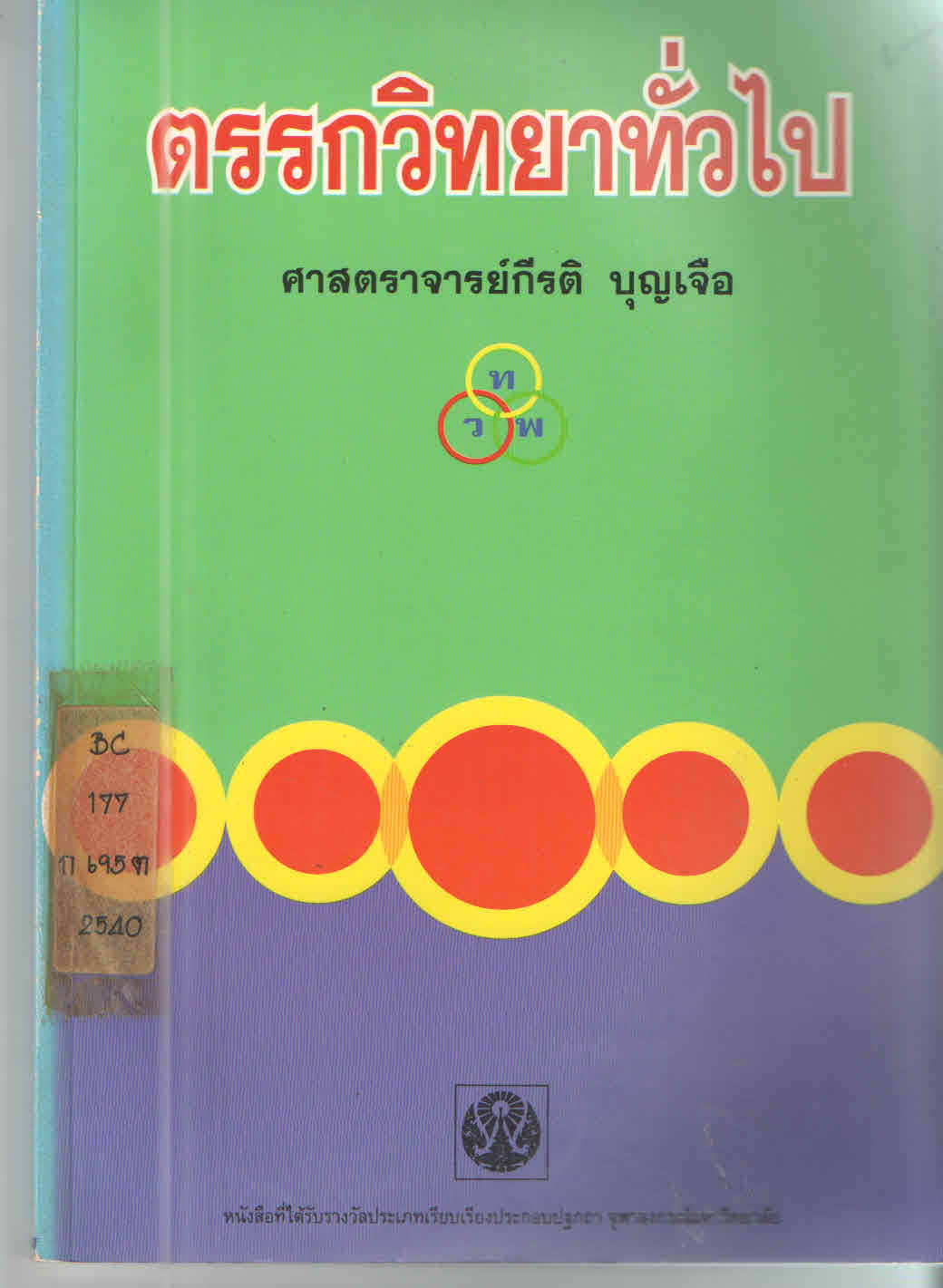| 1. | หนังสือทั่วไป | BC177 ก695ต 2540 | On Shelf ขอยืม | ||||||