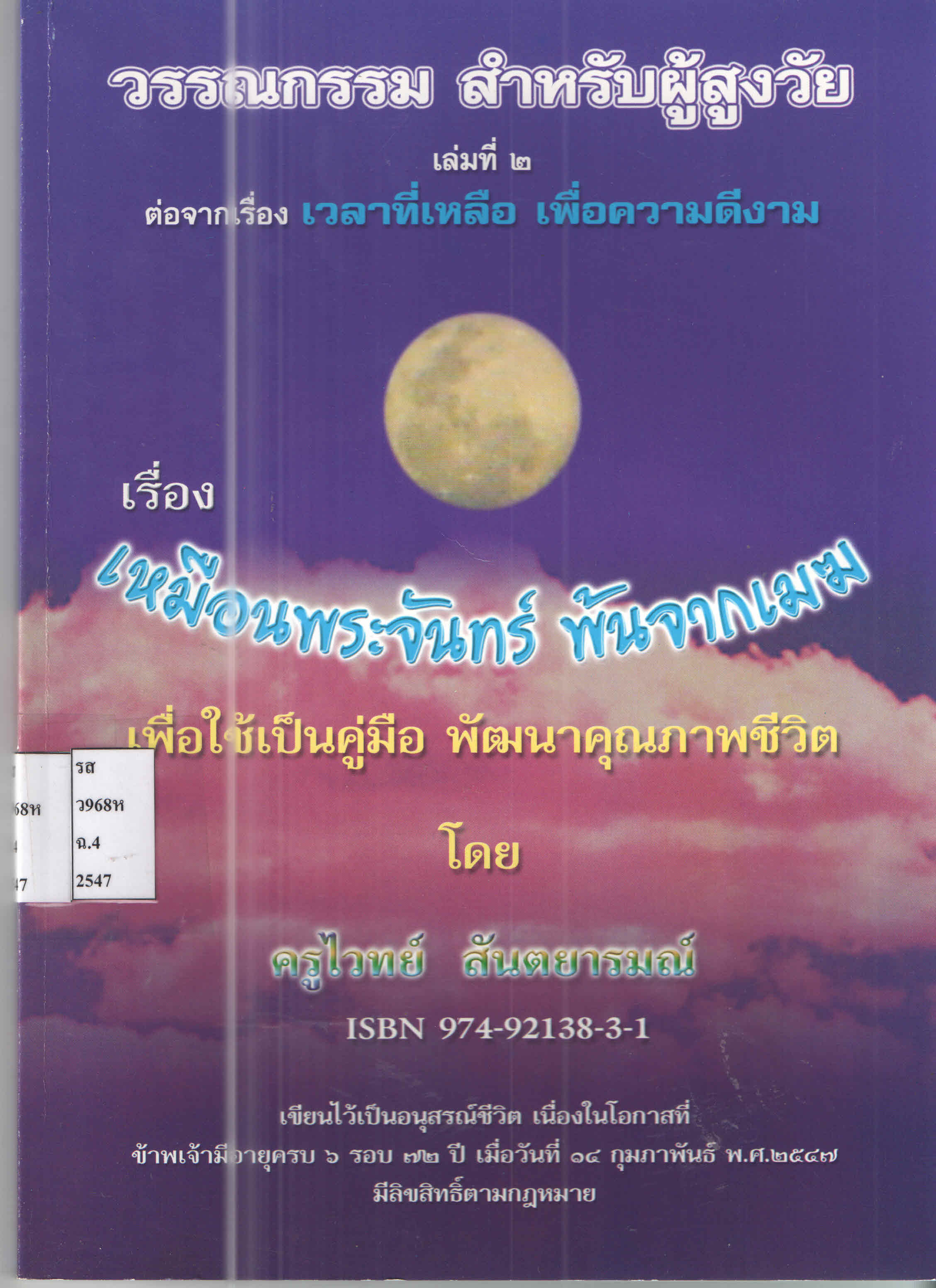 | 1. | หนังสือทั่วไป | รส ว968ห 2547 | On Shelf ขอยืม | ||||||