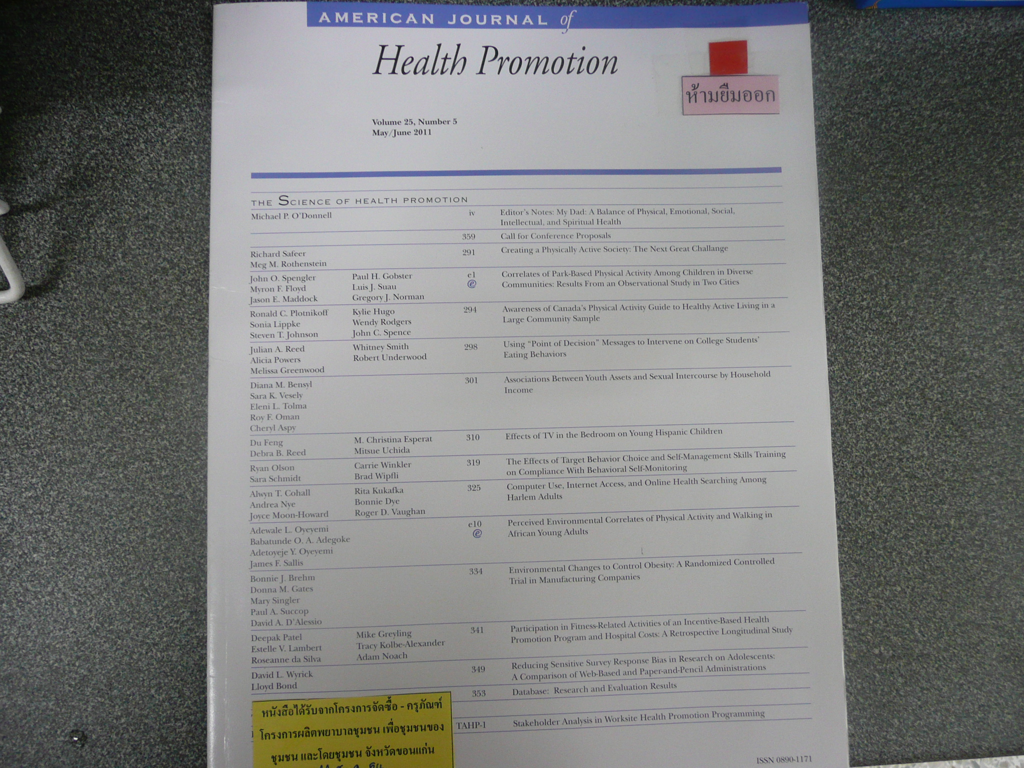 | รายการใกล้เคียง ชื่อเรื่อง [American journal of health promotion./[Journal].] |