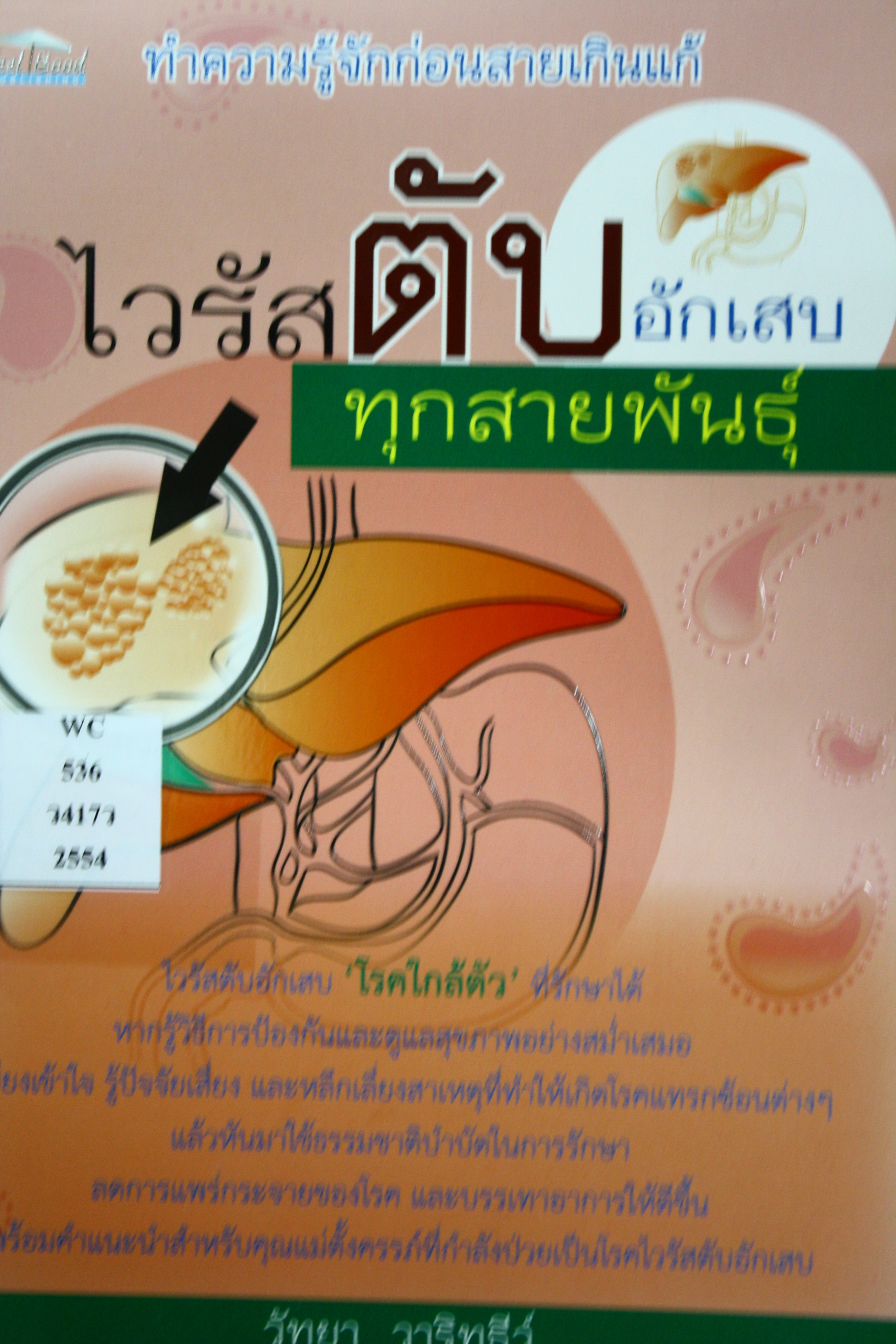 | รายการใกล้เคียง ผู้แต่ง [วัทยา วาริทธีว์] หัวเรื่อง [ไวรัสตับอักเสบ]