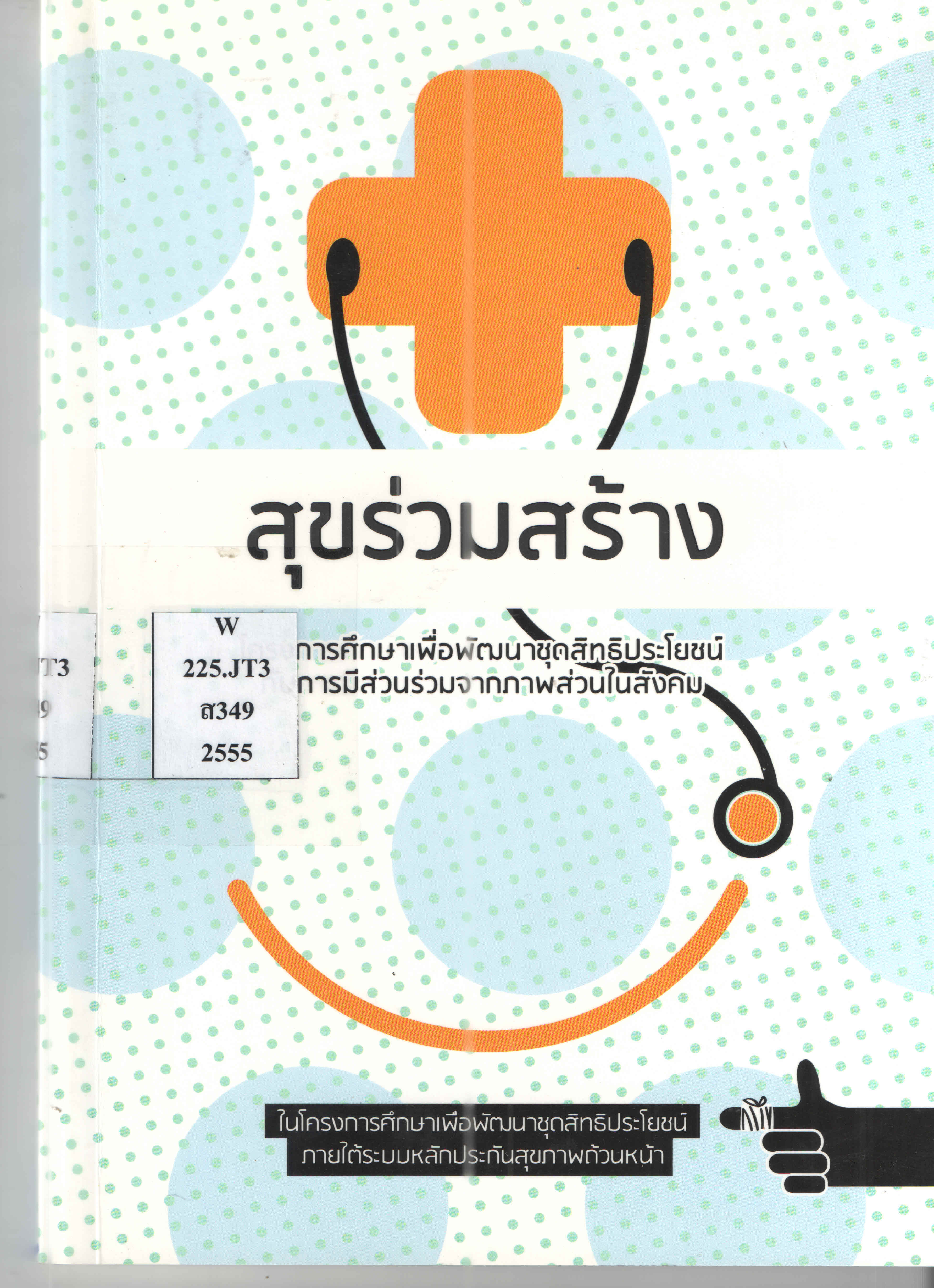 | 1. | หนังสือทั่วไป สถานะ=หนังสือเก่า - บริการ ณ ห้องสมุด (ห้องเหลือง) | W225.JT3 ส349 2555 | On Shelf ขอยืม | ||||||