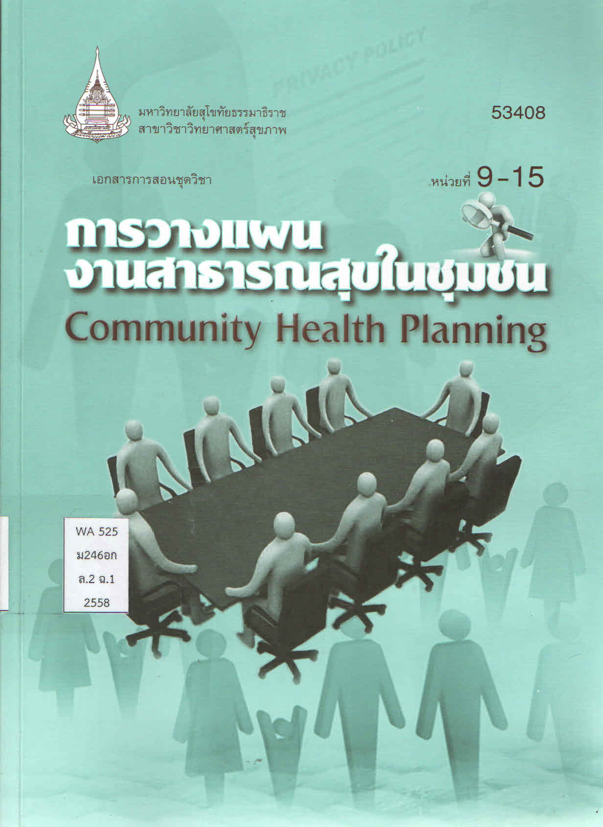 เอกสารการสอนชุดวิชา การวางแผนงานสาธารณสุขในชุมชน= Community health planning หน่วยที่ 9-15/ สาขาวิชาวิทยาศาสตร์สุขภาพ มหาวิทยาลัยสุโขทัยธรรมาธิราช |