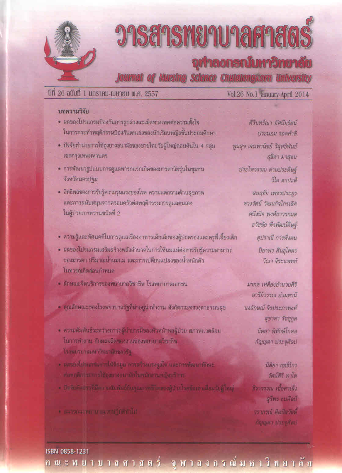 | รายการใกล้เคียง ชื่อเรื่อง [วารสารพยาบาลศาสตร์ จุฬาลงกรณ์มหาวิทยาลัย= Journal of nursing science chulalongkorn university/ คณะพยาบาลศาสตร์ จุฬาลงกรณ์มหาวิทยาลัย] หัวเรื่อง [การพยาบาล วารสาร]