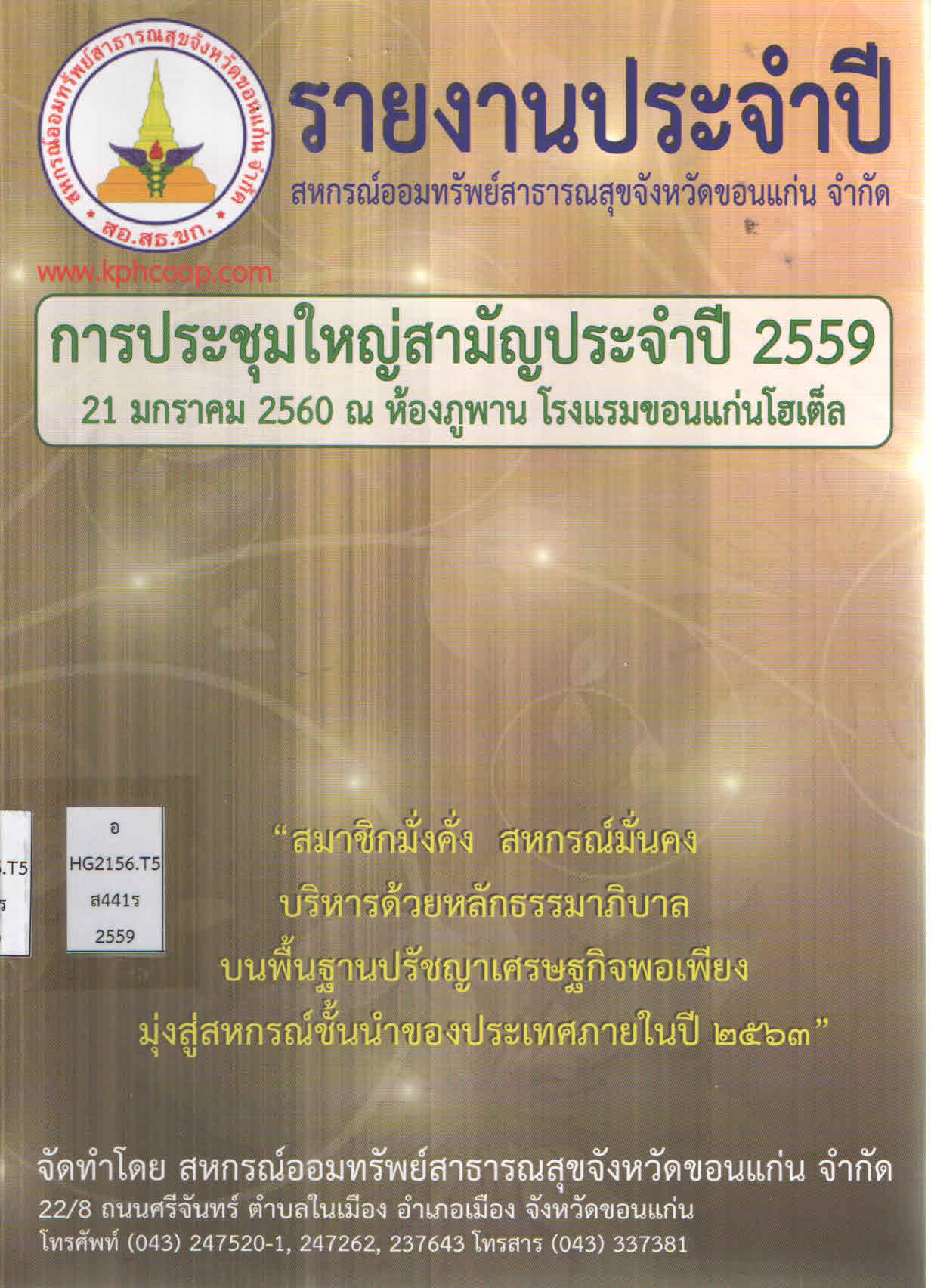 | รายการใกล้เคียง หัวเรื่อง [สหกรณ์ออมทรัพย์สาธารณสุขจังหวัดขอนแก่น รายงานประจำปี] หัวเรื่อง [สหกรณ์ออมทรัพย์สาธารณสุขจังหวัดขอนแก่น ผลงาน] |