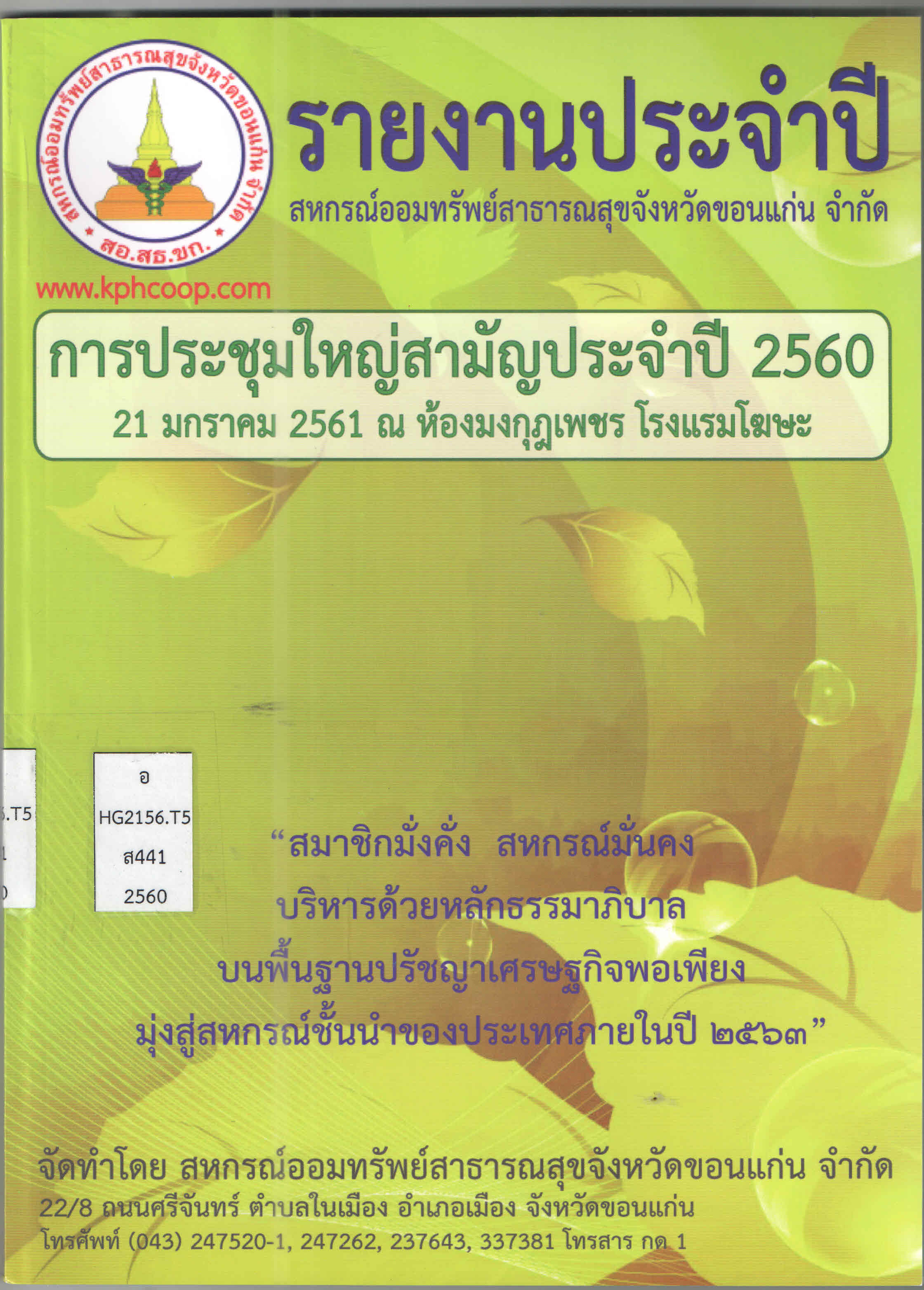 | รายการใกล้เคียง หัวเรื่อง [สหกรณ์ออมทรัพย์สาธารณสุขจังหวัดขอนแก่น รายงานประจำปี] หัวเรื่อง [สหกรณ์ออมทรัพย์สาธารณสุขจังหวัดขอนแก่น ผลงาน] |