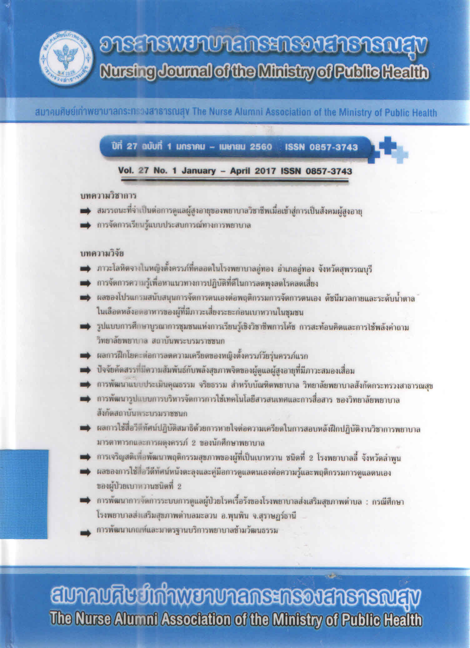 นนทบุรี : หน่วยวารสารการพยาบาลและการศึกษา กลุ่มพัฒนาการศึกษา สถาบันพระบรมราชชนก, 2559 |