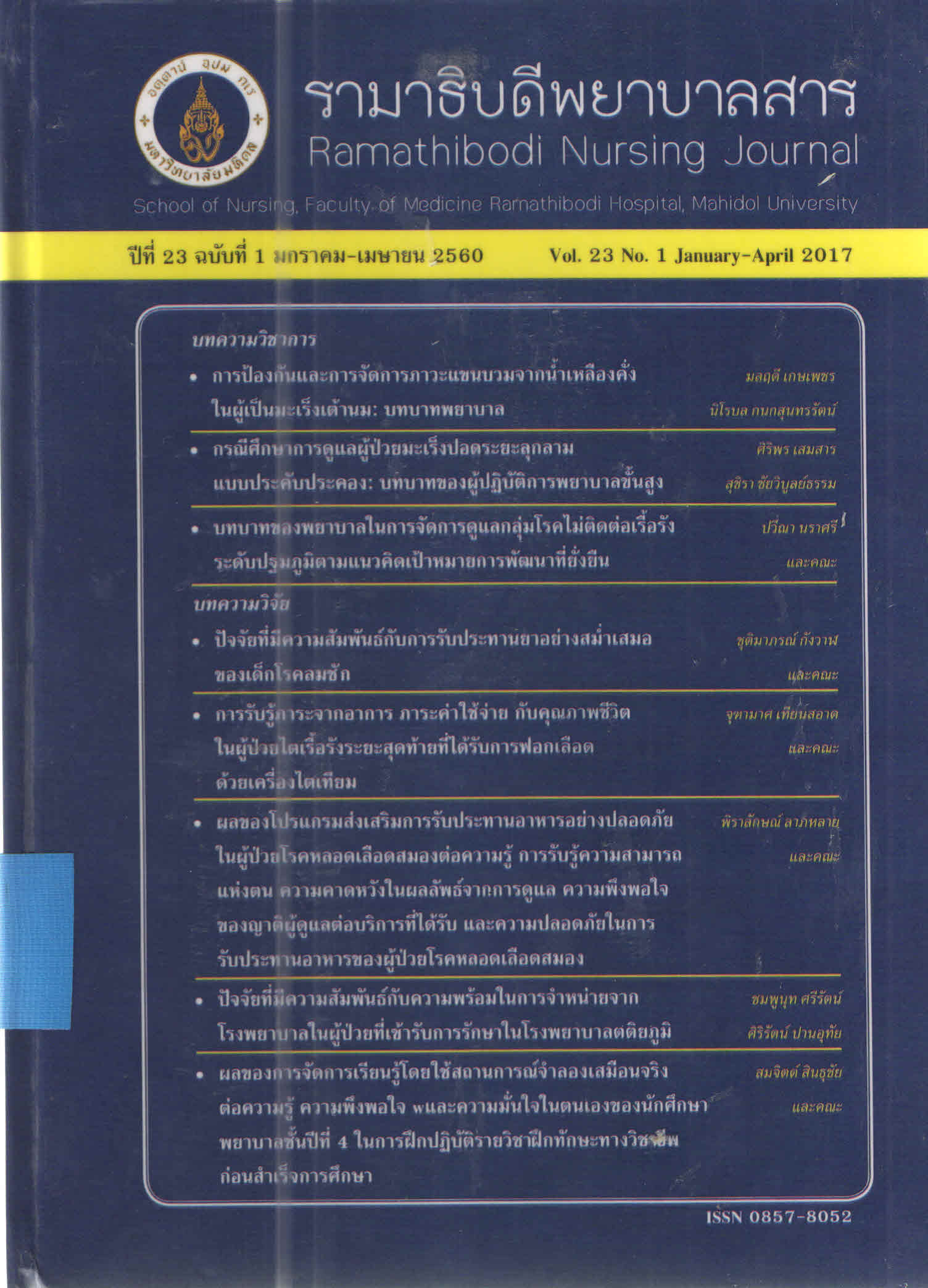 กรุงเทพฯ : โรงเรียนพยาบาลรามาธิบดี คณะแพทยศาสตร์โรงพยาบาลรามาธิบดี มหาวิทยาลัยมหิดลและสมาคมศิษย์เก่าพยาบาลรามาธิบดี, 2560 |