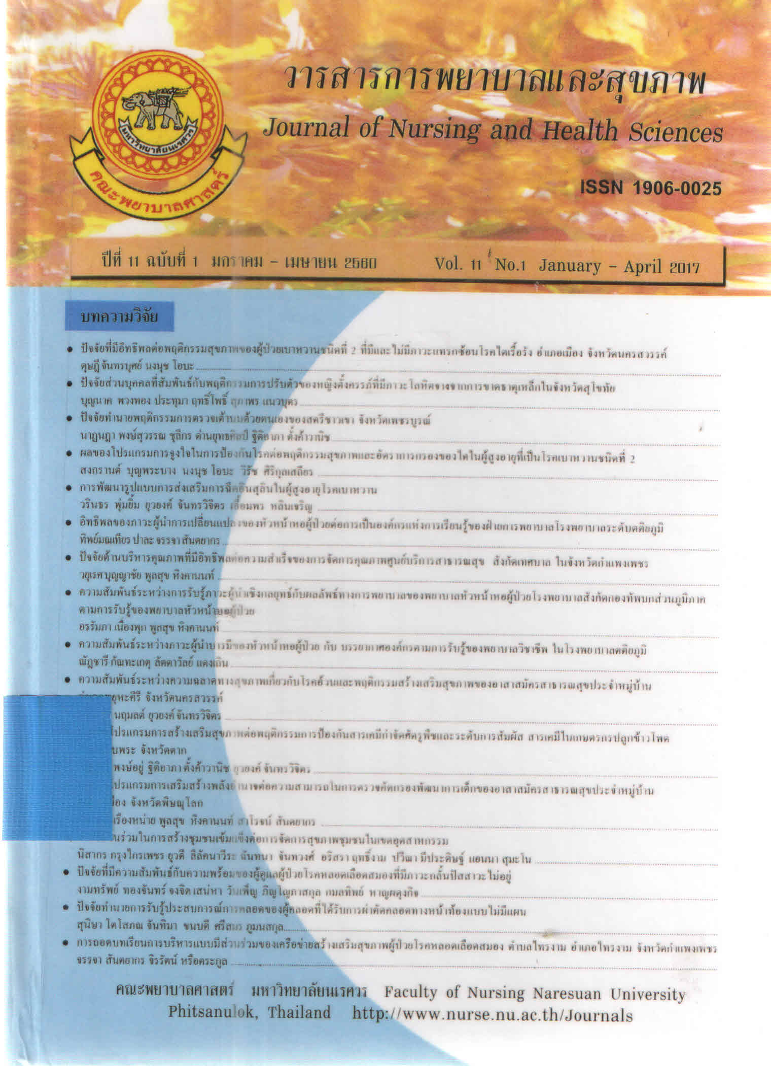 วารสารการพยาบาลและสุขภาพ= Journal of nursing and health sciences/ คณะพยาบาลศาสตร์ มหาวิทยาลัยนเรศวร |