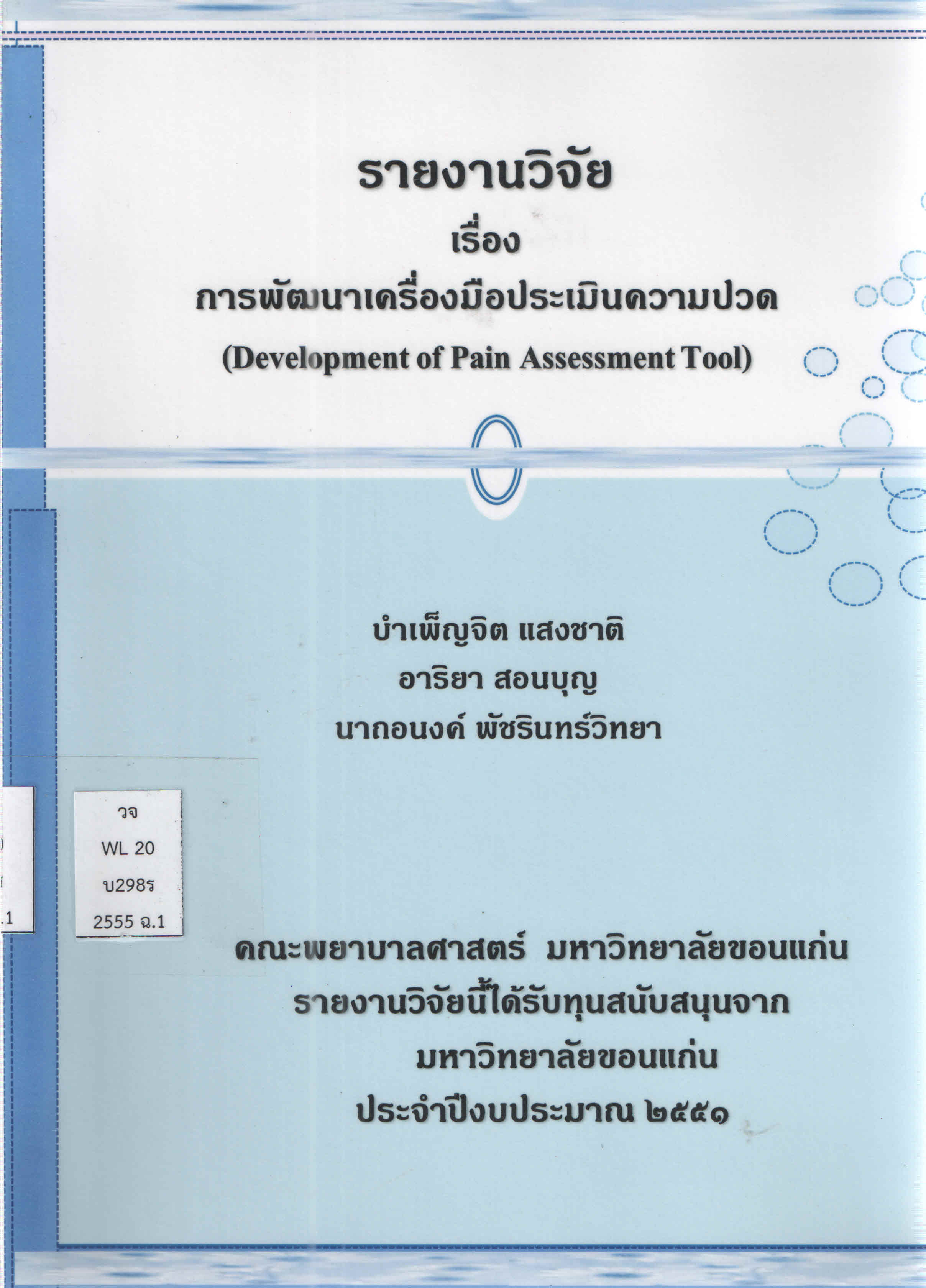| 2. | งานวิจัย | วจ WL20 บ298ร 2555 2551 ฉ.2 | On Shelf ขอยืม | ||||||