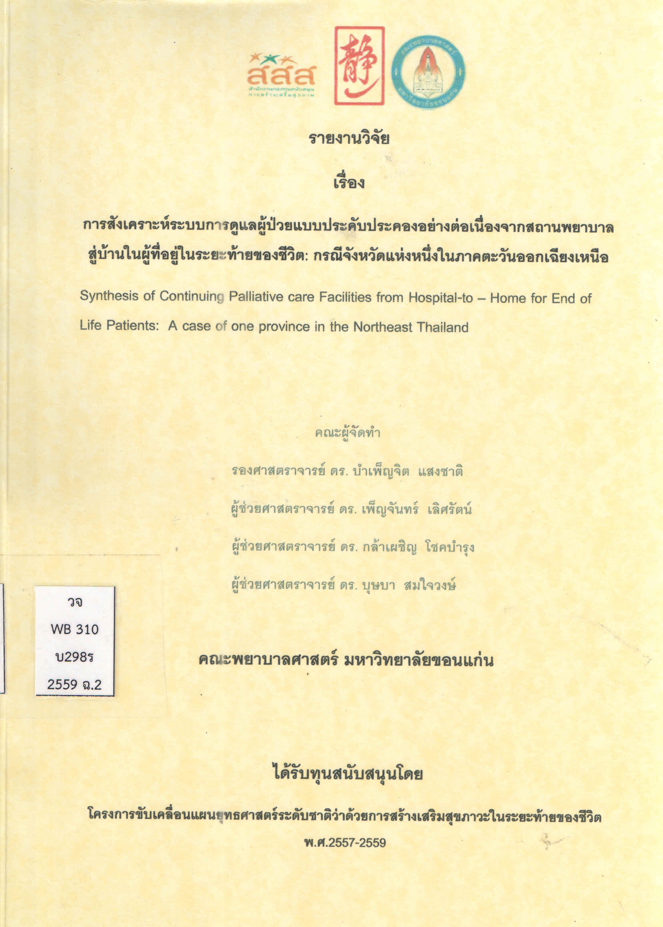 | 2. | งานวิจัย | วจ WB310 บ298ร 2559 ฉ.2 | On Shelf ขอยืม | ||||||