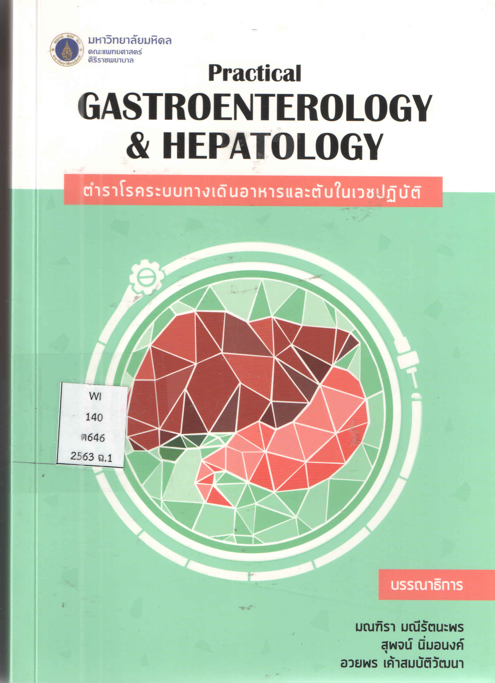 ตำราโรคระบบทางเดินอาหารและตับในเวชปฏิบัติ = Practicalgastroenterology & hepatology / บรรณาธิการ, มณฑิรา มณีรัตนะพร, สุพจน์ นิ่มอนงค์, อวยพร เค้าสมบัติวัฒนา |