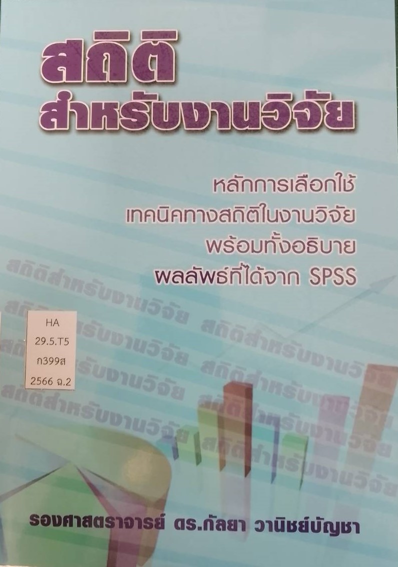 สถิติสำหรับงานวิจัย: หลักการเลือกใช้เทคนิคทางสถติในงานวิจัยพร้อมทั้งอธิบายผลลัพธ์ที่ได้จาก SPSS / กัลยา วานิชย์บัญชา |