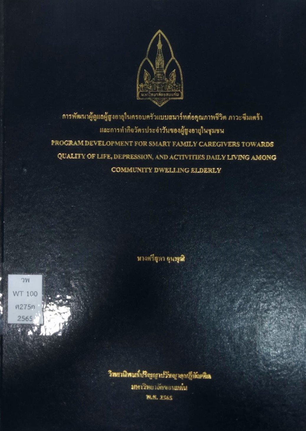 การพัฒนาผู้ดูแลผู้สูงอายุในครอบครัวแบบสมาร์ทต่อคุณภาพชีวิต ภาวะซึมเศร้า และการทำกิจวัตรประจำวันของผู้สูงอายุในชุมชน/ ศรีสุดา ลุนพุฒิ |