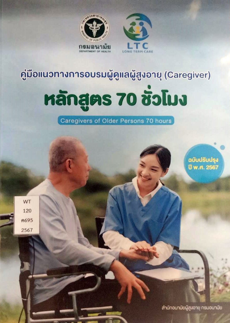 คู่มือแนวทางการอบรมผู้ดูแลผู้สูงอายุ (Caregiver) หลักสูตร 70 ชั่วโมง: Caregivers of older persons 70 hours ฉบับปรับปรุง ปีพ.ศ.2567/ สำนักอนามัยผู้สูงอายุ กรมอนามัย. |