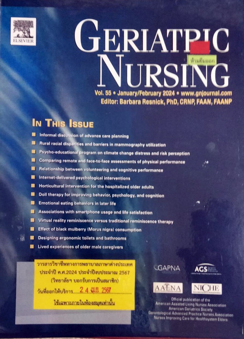 | รายการใกล้เคียง ชื่อเรื่อง [Geriatric nursing. [Journal]] หัวเรื่อง [eriatric Nursing Periodicals] |