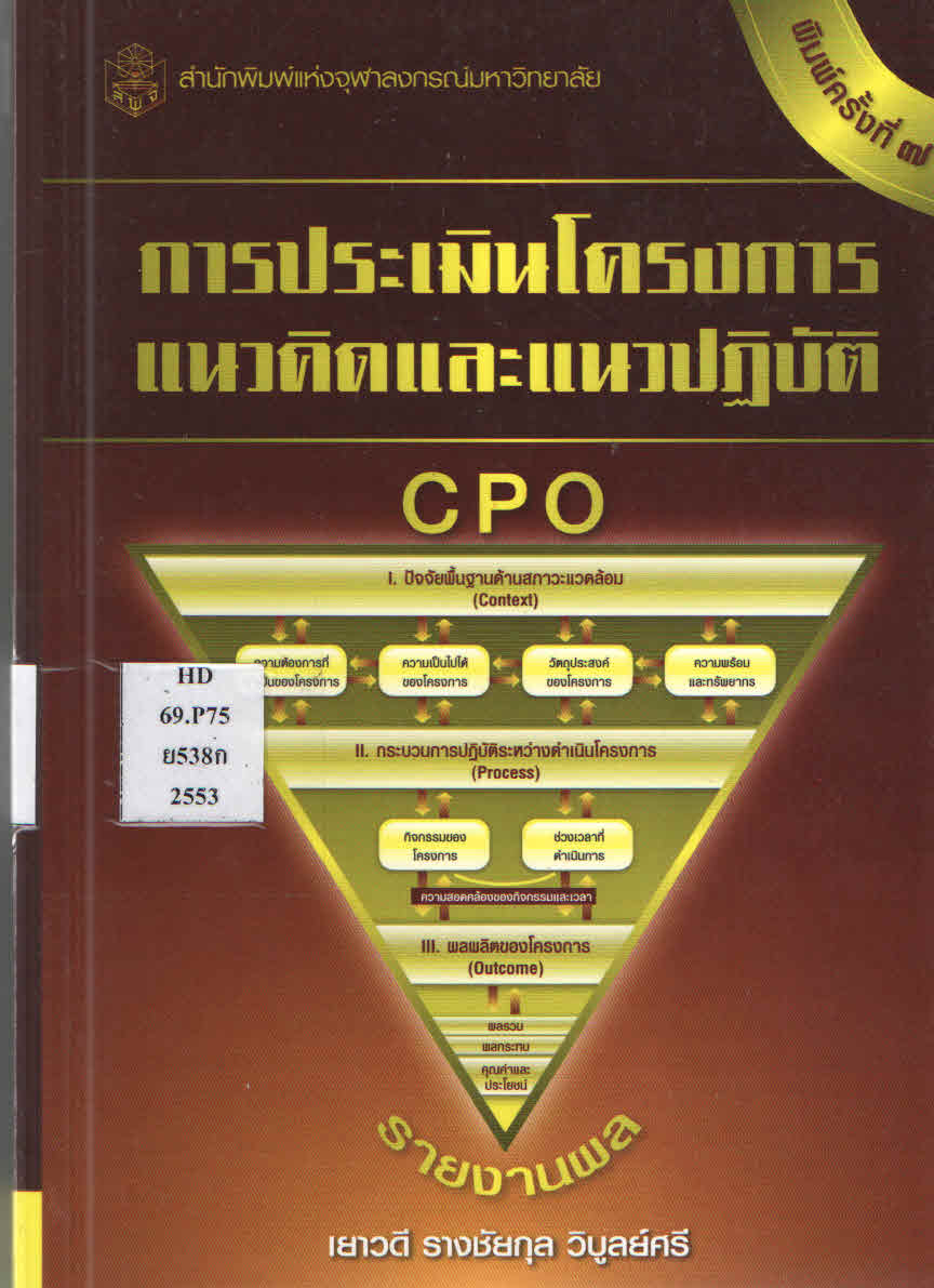การประเมินโครงการ : แนวคิดและแนวปฏิบัติ / เยาวดีรางชัยกุล วิบูลย์ศรี