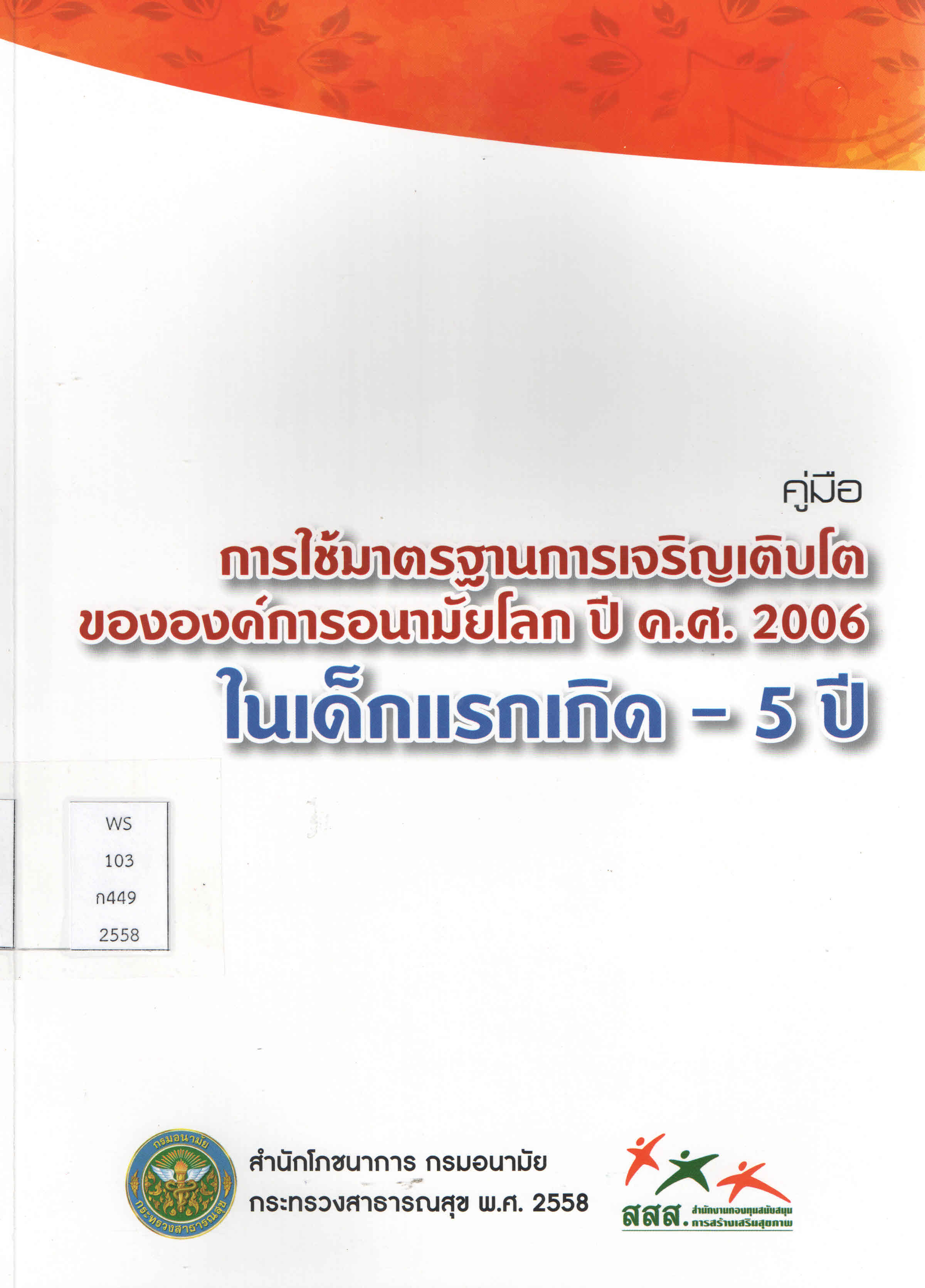 คู่มือการใช้มาตรฐานการเจริญเติบโตขององค์การอนามัยโลก ปีค.ศ.2006 ในเด็กแรกเกิด - 5 ปี | | พิมพ์ลักษณ์ |