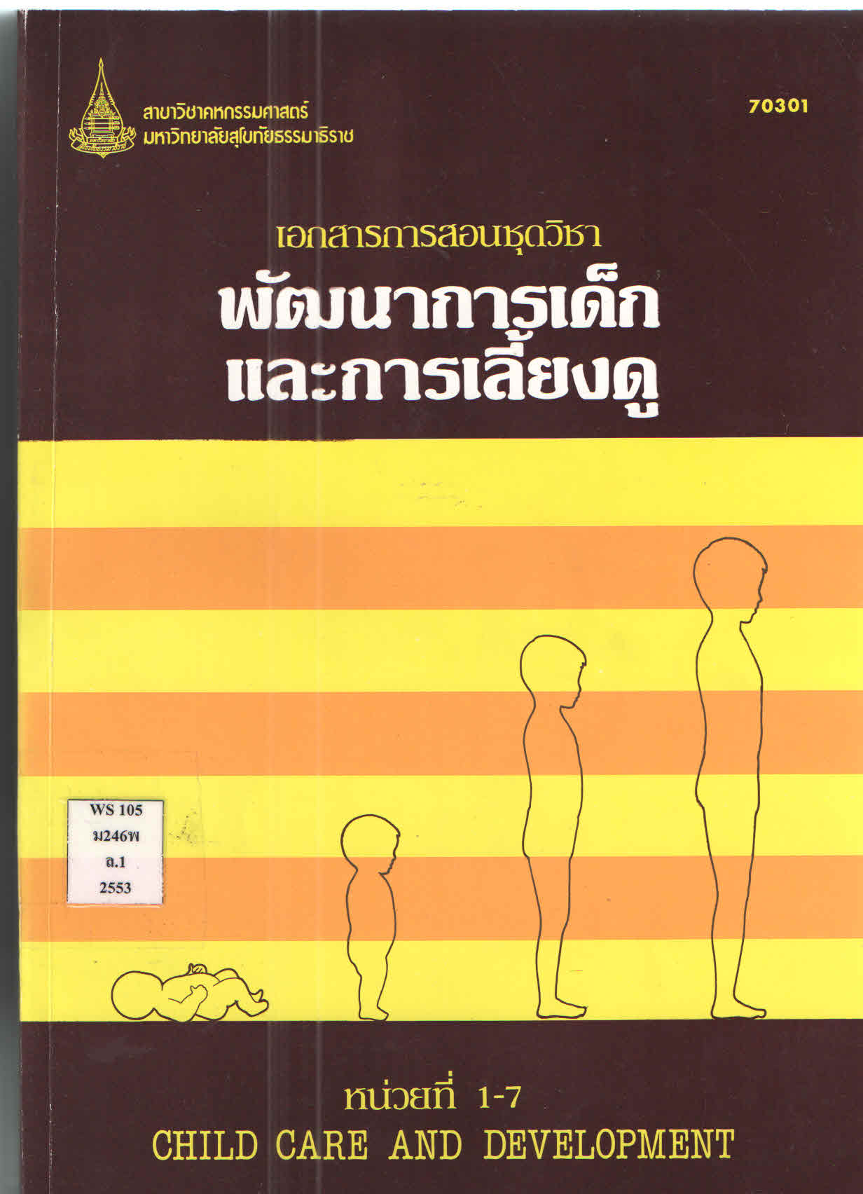 เอกสารการสอนชุดวิชา พัฒนาการเด็กและการเลี้ยงดู = Child care and development หน่วยที่ 1-7/ สาขาวิชาคหกรรมศาสตร์ มหาวิทยาลัยสูโขทัยธรรมาธิราช.