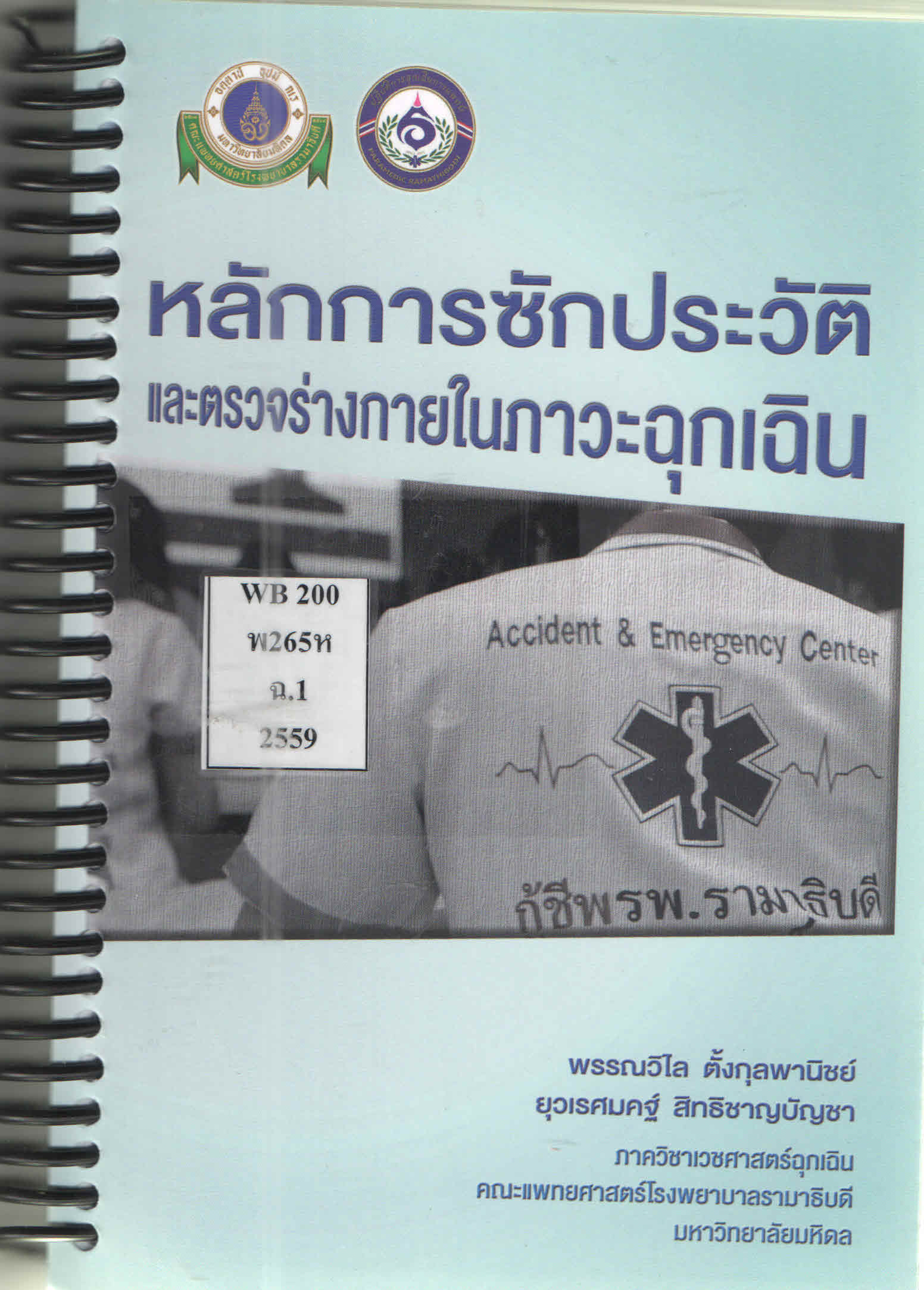 หลักการซักประวัติและตรวจร่างกายในภาวะฉุกเฉิน/ พรรณวิไล ตั้งกุลพานิชย์ และ ยุวเรศมคฐ์ สิทธิชาญบัญชา.