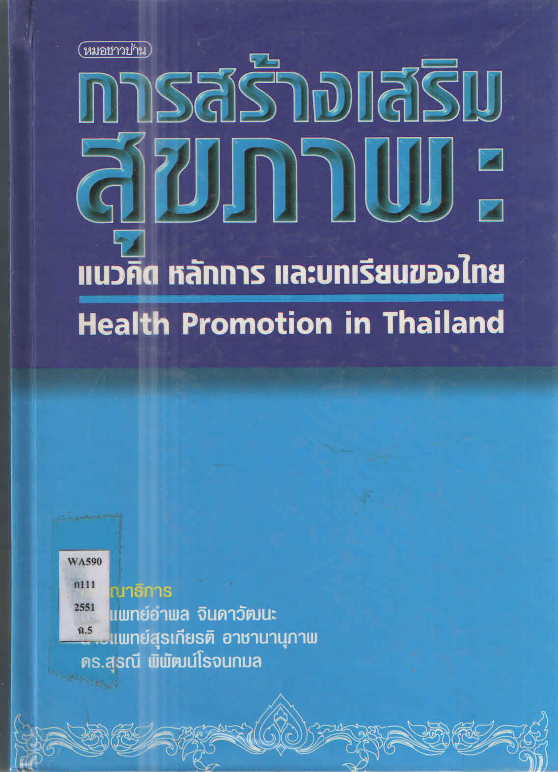 การเสริมสร้างสุขภาพ : แนวคิด หลักการ และบทเรียนของไทย/บรรณาธิการโดย อำพล จินดาวัฒนะ.